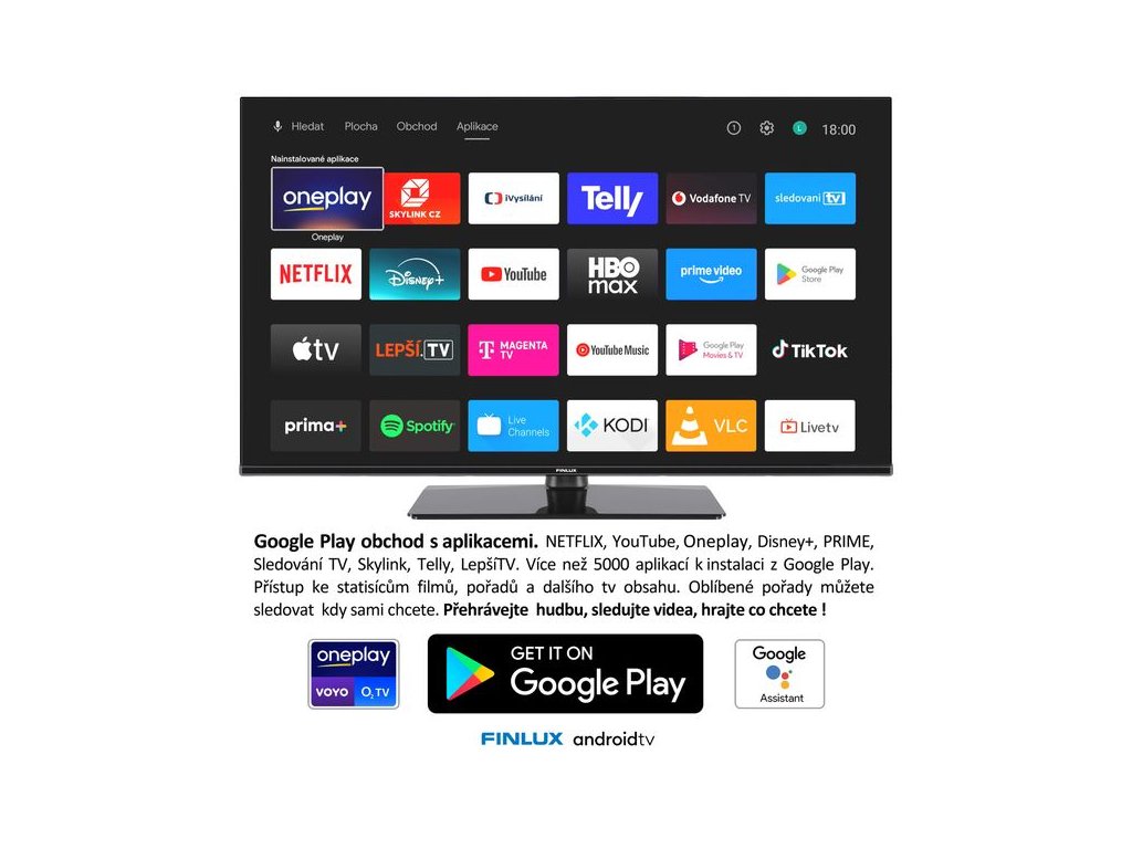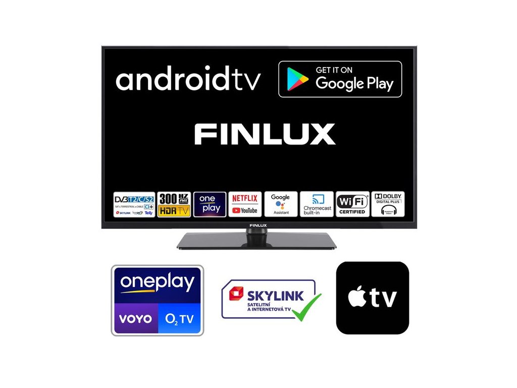 Netflix, YouTube, Oneplay, Disney+, MAX, Skylink (Internet i Hybrid), Sledování TV, Telly, LepšíTV, Kuki, Antik, HBO MAX, TV Seznam, Mall TV a stovky dalších aplikací ke stažení z Google Play |
