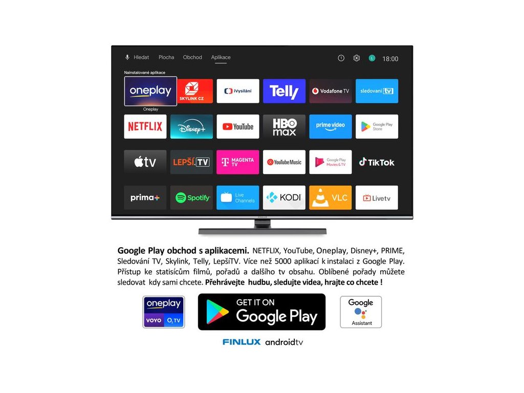| Oblíbené TV/VIDEO aplikace | Netflix, YouTube, OnePlay, Disney+,HBO MAX, Skylink (Internet i Hybrid), Sledování TV, Telly, Vodafone TV, LepšíTV, Kuki, Antik, TV Seznam, Mall TV a stovky dalších aplikací ke stažení z Google Play |