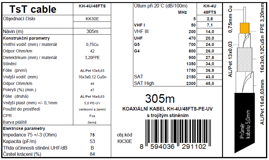 Koaxiální kabel KK30E KH-4U/48FTS-PE černá ø5,0mm/305m