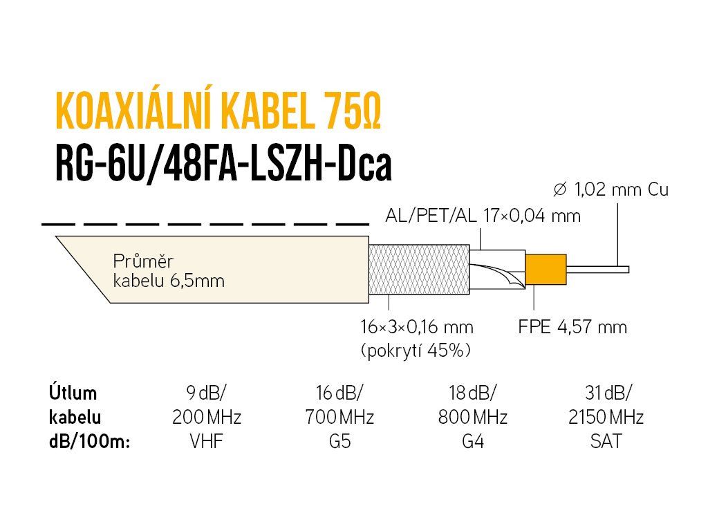 Koaxiální kabel KK32C RG-6U/48FA-LSZH-Dca bílá ø6,5mm/305m